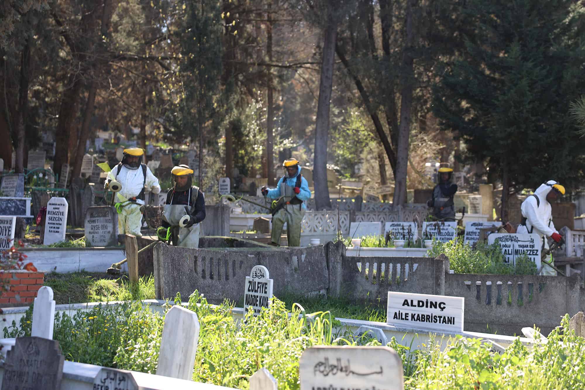 Büyükşehir ekipleri tarafından uzayan otlar biçildi, bozulan alanlar onarıldı ve mezarlıklar ziyaretçilere hazır hale getirildi. Çalışmaların tamamlanmasıyla birlikte vatandaşlar, bayramda mezarlıkları temiz, steril ve düzenli bir ortamda ziyaret edebilecekler.