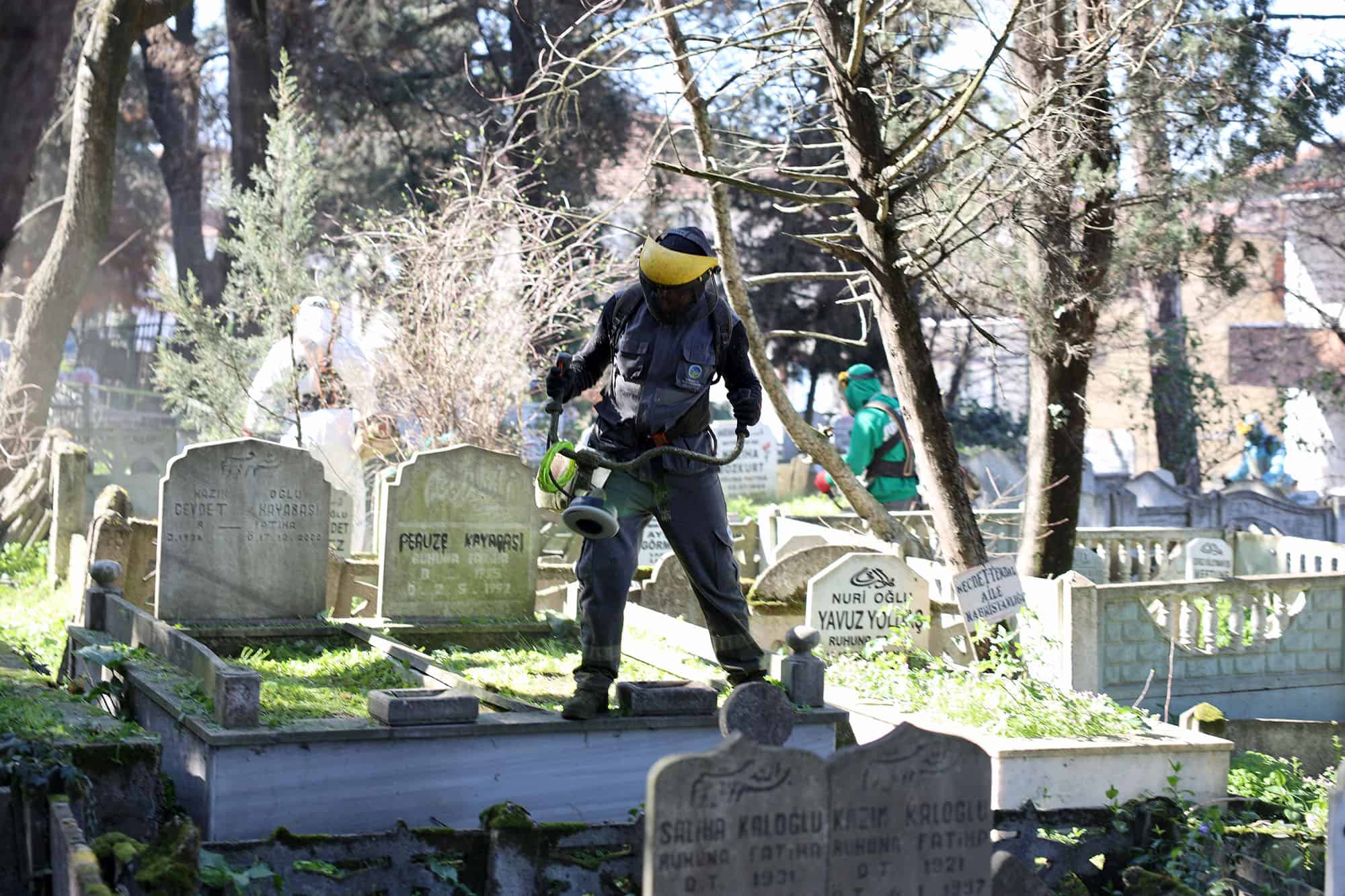 Mezarlıklar Dairesi Başkanlığı tarafından yapılan açıklamada, “Bizler için kıymetli olan vefat eden vatandaşlarımızın defin alanları titizlikle temizleniyor. Ramazan Bayramı’nda gerçekleşecek ziyaretlerin bakımlı, temiz ve güvenli bir ortamda yapılması için çalışmalarımız sürüyor. Tüm vatandaşlarımıza hayırlı bayramlar dileriz” ifadelerine yer verildi.